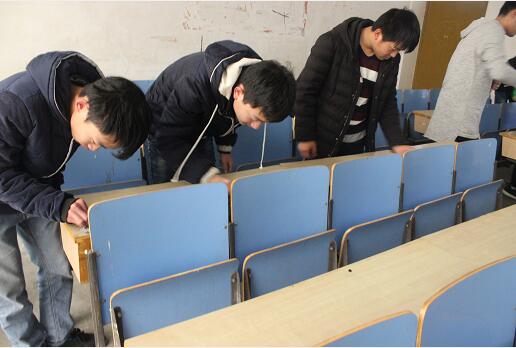 活动于9点整准时开始,全体志愿者在北区科技楼集合后以小组为单位分配劳动工具、说明清扫内容,开展卫生打扫活动。整个活动期间,志愿者们互相配合、分工协作,一个负责清除桌子上的污渍,另一个就负责擦掉污水;学生会成员不仅认真完成了自己的任务,还积极帮助志愿者较少的班级劳动;我院党员也积极参与其中,到各个教室配合各班开展清扫工作,活动最后还配合学生会成员做好检查和整改工作,并收齐劳动工具。上周的清扫活动,由于配发的劳动工具数量不足且没有做好工具的统筹安排工作,所以造成某些教室除课桌之外的门窗没有打扫干净,对此我院已针对性的在第二周安排第二次清扫活动,将“课桌文化”清理活动进行到底。