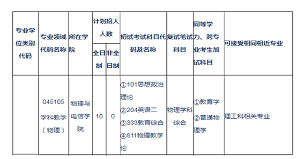 物理与电信学院2020年学科教学(物理)专业硕士招生简章