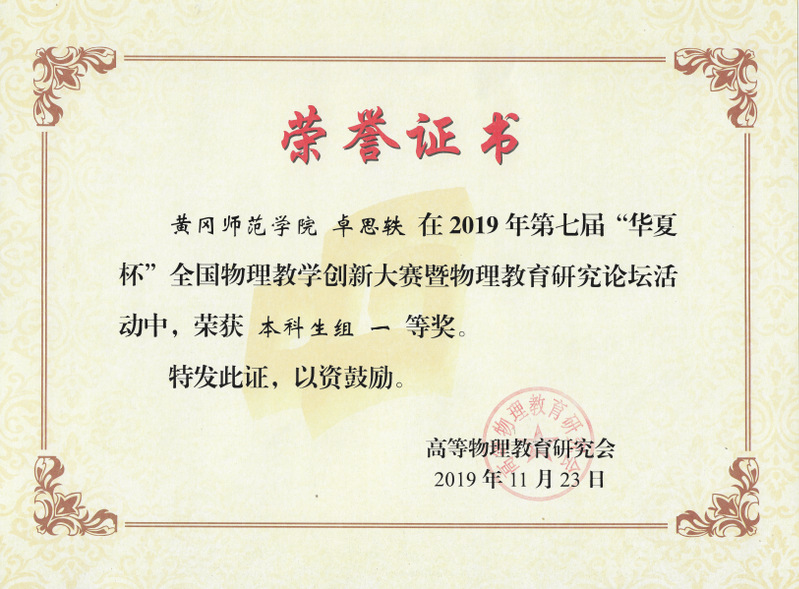 我院在第七届“华夏杯”全国物理教学创新大赛暨物理教育研究论坛中再创佳绩
