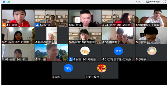(通讯员:赵之琳)2020年5月30日下午,物理与电信学院于腾讯会议平台举办2020物理教学创新大赛——决赛,比赛由物理与电信学院创科社承办,主要面向物理教育方向师范生,同时鼓励其他专业方向的同学参加。参赛选手们精心准备模拟授课内容,充分展现自己的风采,有30名同学报名参加,经过初赛与决赛的选拔,14名选手脱颖而出,李中豪、田博雅、谢琛获得一等奖,胡颖、吴春燕、黄豪宇、万琴思、王卓异获二等奖,丁智涛、章浩、尚浩男、张成晟、李坤、郝奎等同学获得三等奖。
