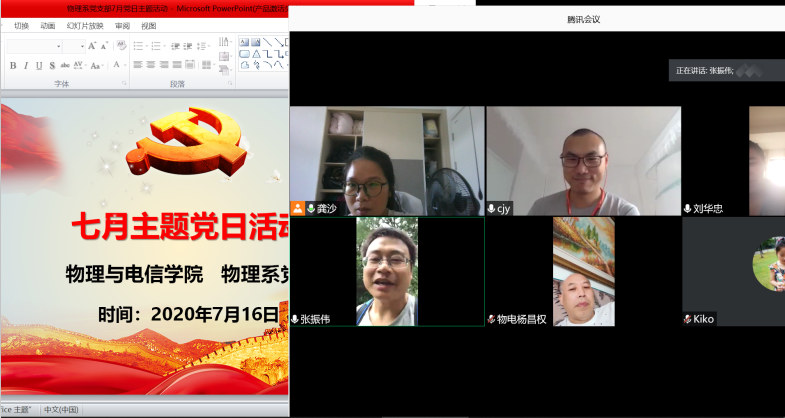 为深入贯彻落实中央有关精神,根据中共湖北省委组织部和省委教育工委要求,为进一步学习贯彻全国两会精神,特别是习近平总书记在参加湖北代表团审议时的重要讲话精神,深入学习省委十一届七次全会精神,喜迎中国共产党建党99周年,7月16日学院各党支部召开了7月份支部主题当日活动,活动在视频平台进行。