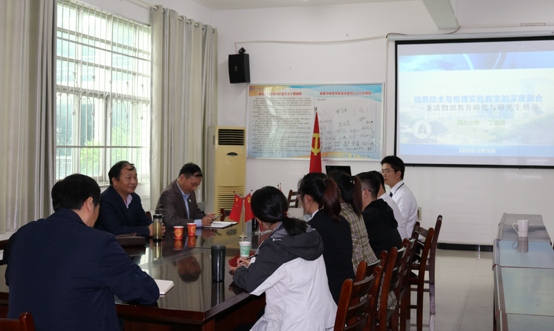 2020年10月16日星期五,湖北大学物理与电子科学学院丁益民教授和彭小牛副教授应邀来我校交流指导。为物理与电信学院学科教学物理领域的研究生作了“信息技术与物理实验教学的深度融合--兼谈物理教育研究与研究生培养“的主题报告,为本科生进行了考研学习报考指导。讲座在物电楼205会议室举行,院长兰智高教授、副院长徐火希教授及部分老师参加交流活动。