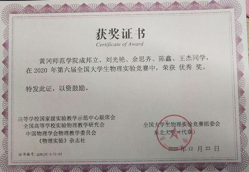 我校学子在全国大学生物理实验竞赛中取得优异成绩
