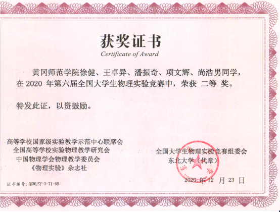 (通讯员 陈娇) “2020年全国大学生物理实验竞赛(创新)”经过多日紧张的线上初赛和复赛,于2020年12月17日落下帷幕。物理与电信学院组织5支代表队参加了本次竞赛,获得二等奖4项、优秀奖1项,获得优秀组织奖,我校3名教师担任竞赛评委。