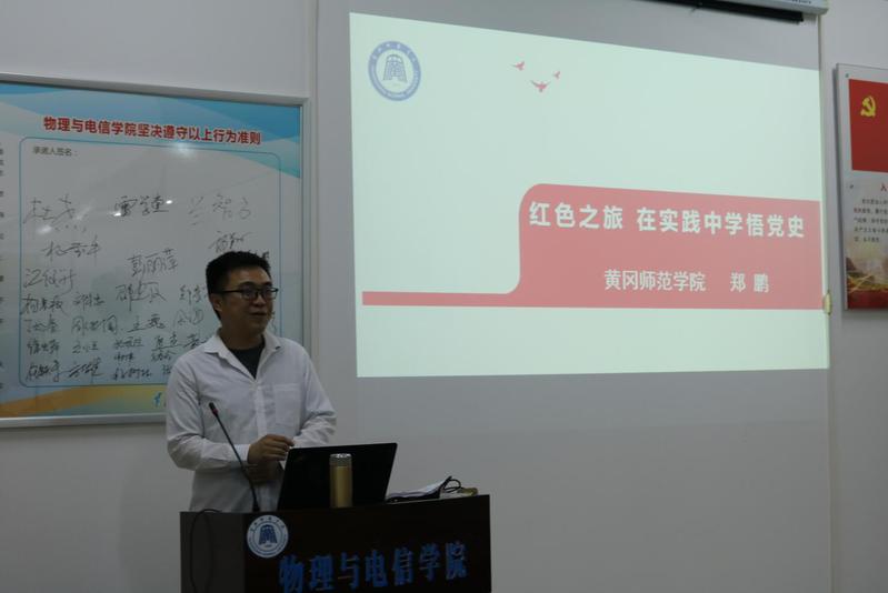 2021年5月13日下午4点,根据《黄冈师范学院党史学习教育宣讲工作方案》的通知要求,物理与电信学院党总支邀请了理论专家宣讲团成员郑鹏博士在我院会议室为党员教师进行党史学习教育宣讲。