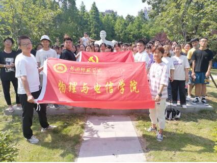 江俊新老师带领学生党员站在为共产主义事业献身的陈潭秋烈士雕像前,怀着无比崇敬的心情集体默哀,然后重温入党誓词,追忆陈潭秋烈士“大义凛然,誓死不屈”的精神,在本次党史学习教育活动中追寻英雄足迹,继承先烈遗志,弘扬革命传统,传承红色基因,增强了大学生责任感和使命感。