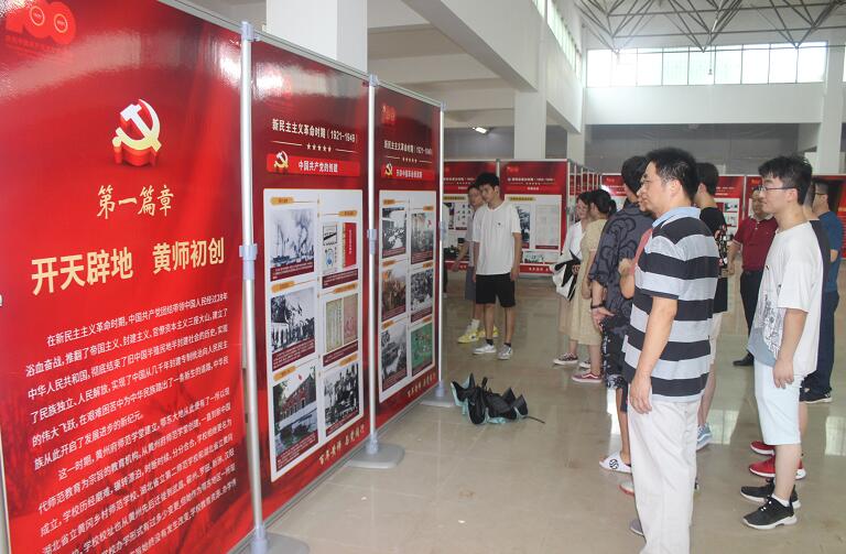今年是中国共产党成立100周年,回顾我们党的百年历程,结合我校的百年历史进程,为进一步加强党史学习教育,提高我院党员的战斗力与凝聚力,我院党总支率领师生党员于2021年7月5日下午,来到了北区兰园餐厅二楼参观了“百年黄师与党同行”主题展。