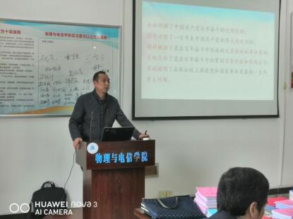 2021年11月11日下午,根据《黄冈师范学院党史学习教育宣讲工作方案》的通知要求,物理与电信学院党总支邀请了理论专家宣讲团成员余维祥教授在我院会议室为党员教师进行党史学习教育宣讲。