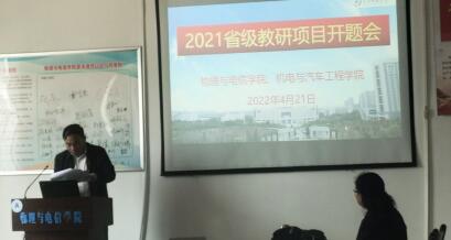 2022年4月21号,物理与电信学院在电信楼205召开2021年省级教研项目(鄂教高函【2022】1号)开题论证会。为了加强对省级教研项目的管理,提高教研项目研究质量,物电学院和机电学院联合召开本次开题论证会,本次开题会三个项目,物理与电信学院两个项目:电子信息类新工科实践体系构建与实证研究(雷学堂,项目编号2021440);基于OBE教育理念的物理学专业人才培养模式研究及实践(王小兰,项目编号:2021444);机电学院1 个项目:借助科研成果“四转化”提升机械类大学生创新创业能力的研究(陈小兰,项目编号2021438)。