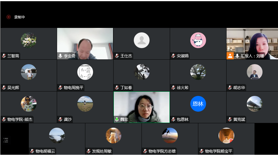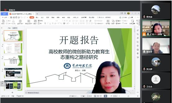 2022年11月30日上午,物理与电信学院刘珊副教授课题组的全国教育规划教育部重点项目《高校教师的微创新助力教育生态重构之路径研究》(课题批准号:DIA220365)开题报告会在线隆重举行。