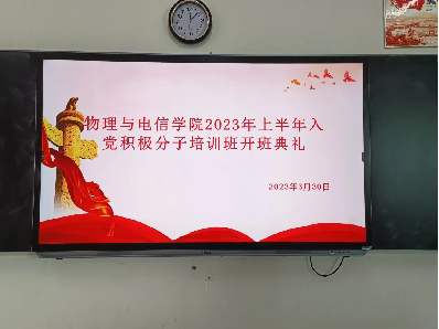 2023年3月30日中午12:10,物理与电信学院2023年上半年入党积极分子培训班开班典礼在北区创新楼113举行。