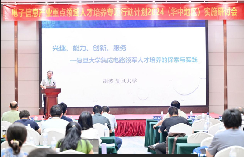 研讨会上,教育部电子信息类专业教学指导委员会委员、复旦大学继续教育学院院长胡波,做了“兴趣、能力、创新、服务--复旦大学集成电路领军人才培养的探索与实践”的报告,介绍了当前集成电路人才培养的现状以及复旦大学的培养模式和思路。此外,中国科学院计算研究所、华纳九天、高云FPGA等专家对电子信息类技术发展、人才需求进行了分析和报告,为高校电子信息重要领域人才培养具有重要指导作用。