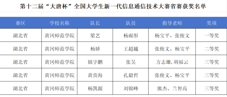 我院学子在2025年第十二届“大唐杯”全国大学生新一代信息通信技术大赛省赛中,斩获省一等奖1个,二等奖1个,三等奖3个,为学院赢得了荣誉,其中一等奖获奖队伍将代表学校参加线下国赛。
